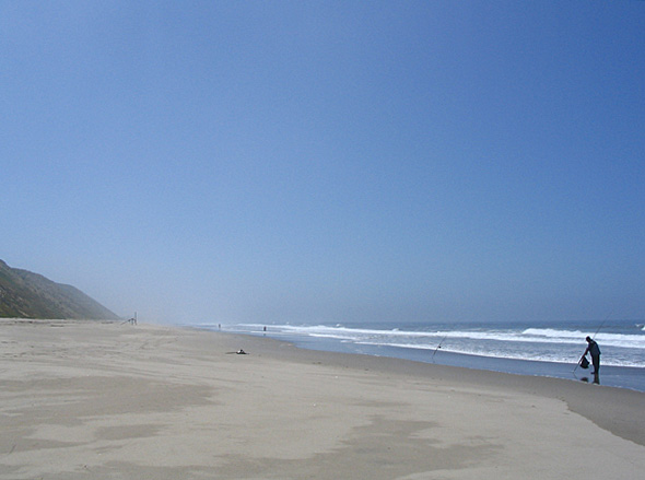 of the surf, that might hold some fish. On with the waders, out with