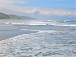 Manresa beach again, 9:00 or so. Fished the first hole, on the left side, but no hits. Fished it from the right, and had one hit; a walleye that unhooked itself, but I had it close enough to see its size (small), and that it ate the zen worm. Overcast, clearing to sunshine. I walked further down the beach but didn't have any hits. Saw a dolphin pounding through the surf.. that was fun. Went back to the first hole again, and this time it was different, as the tide had come in some. Fish had come in too, and I had multiple hits, and 3 barred perch landed. Small ones only. Had a few more on but lost them, including one that was significantly bigger than the rest. Skies returned to overcast. One other fisherman showed up; a bait guy. He caught a few during this time, and was keeping his big ones. Toward the end the waves were getting bigger and more challenging to work through. I had lots of fun being out in the middle of it, though.
