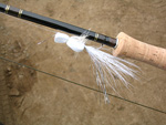 I experimented with a few line setups today, on the sage 9wt 10' rod. The new RioMax 8wt-300gr shooting head, type 3, seemed a little light. I guess they really meant it as being for an 8wt. I cast my newly tied gurgler with this. Now, fishing with the surface fly is a new kind of fun.. yeah, of course trout guys do this all the time, but I haven't done so in a good long while. So I cast the thing out, and then giggle it, hoping to see a fish pounce on it. Great fun. Too bad no fish pounced on it, but like I said, stripers were around but not necessarily a lot of them in close at the time I was there.