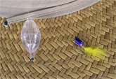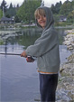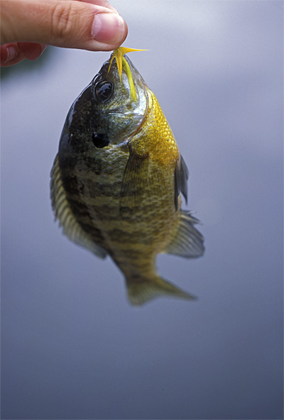 Dominic and I went up to Westlake pond again for a little bluegill fishing. It was overcast today, and I couldn't find my polarized glasses, so seeing the fish was rather difficult. But we managed anyway. I fished with my green/yellow popper, and Dominic had his little purple/gold/marabou popper on (his first fly -- he tied it himself, with a lot of help from me), with the clear casting bubble this time. The bluegill liked both of them. We caught some pretty big ones too.. nice males with lots of red on them.