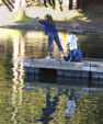Anyway.. a big latino family showed up as well and was interested in the fishing, so all of them hung out on the little dock watching/fishing. Dominic & Linus got tired of the fishing pretty fast, but they don't get tired of someone else fishing.. they just don't quite have the patience for it yet themselves.
