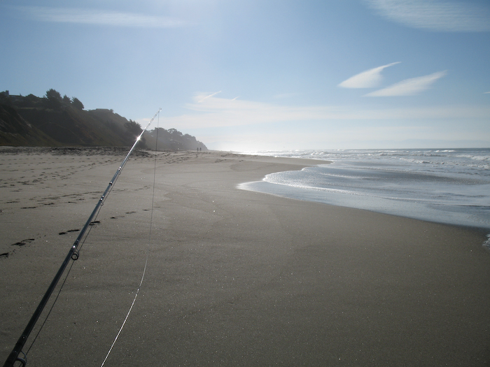 I then drove back toward town, but was hungry, so I stopped and got a powerbar at the 76 gas station at Seacliff, after which I drove down to give Seacliff a try. Surf was a lot easier here, but no structure to speak of. I may have had a nibble from a dink. Felt like it, anyway. I fished north, from the cement ship.