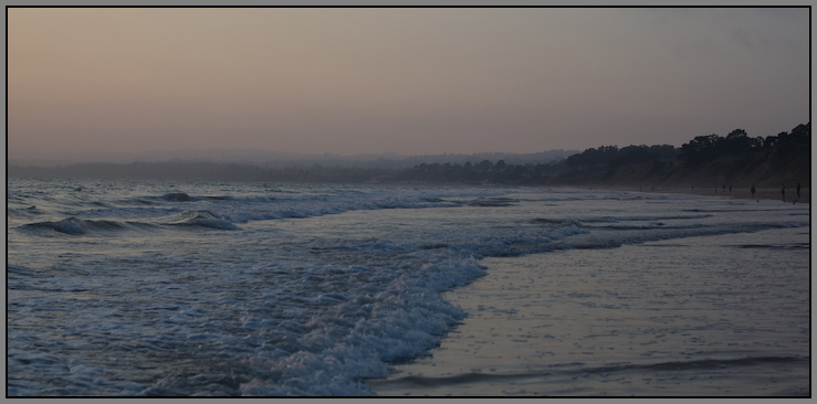 Beach is pretty flat, but some areas look better than others, so I walk and cast and cast. At one point I have some bumps, but none that stick. Cast and cast, and a bit of lollygagging as the sun sets and the sky turns all sorts of pretty colors.