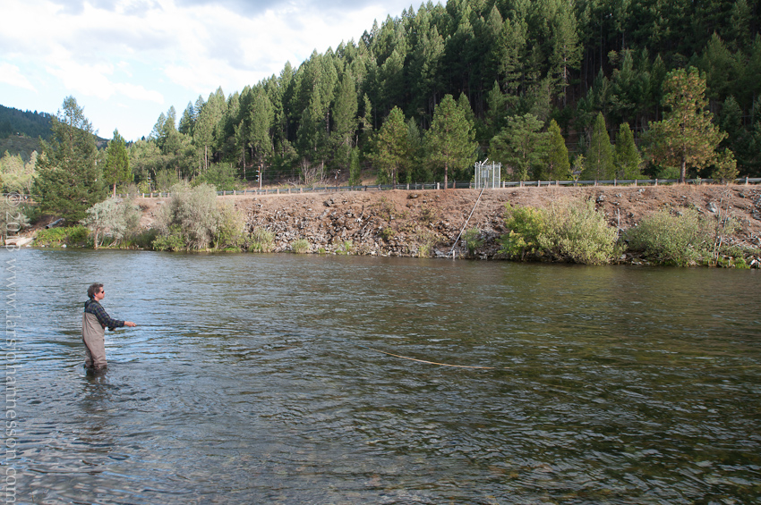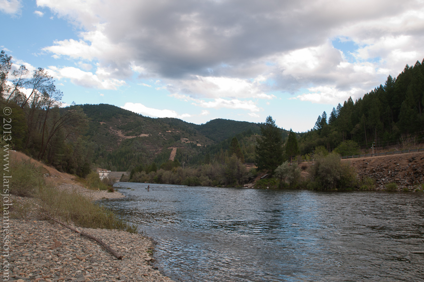 Armed with new directions, (and a few more flies) we decided to stay in the area, and drove to the Mary Smith campground on the Lewiston reservoir, stopping at the Lewiston market for some groceries and ice cream. Some great flyfishing water is just below here. All but 2 campsites were reserved for the weekend, but we got a nice one, next to the last one at the end. Another family came in later, a couple from San Francisco with their 3yearold daughter. She's german, named Delia, and a musician (weird), knows a swedish flute player (weirder), has a nice Fjällräven backpack: we had a few things to talk about. Her husband (Eric) is American, and very nice. Daughter is named Daphne. Very cute.