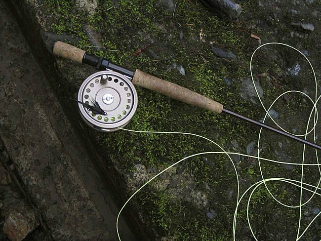Some gear I put together in the mid 1980's. I assembled the rod myself, out of a Sage graphite II blank, 9 foot for an 8 weight line. The reel is a Sage 509, made by Hardy, with some custom modifications. Its pretty, with a very loud click!