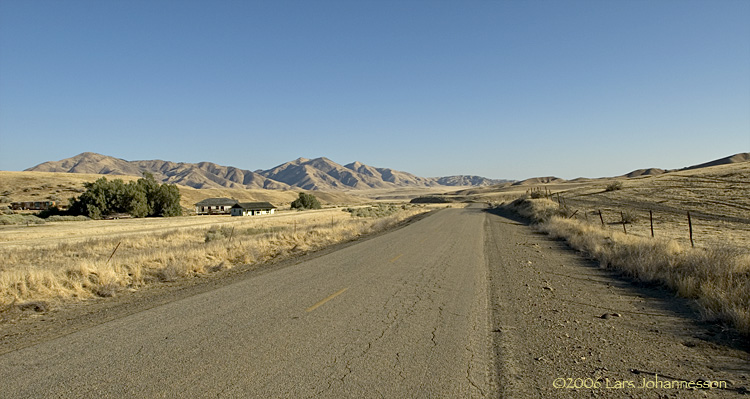 Morning at road outside Mercy Hot Springs, California central valley.